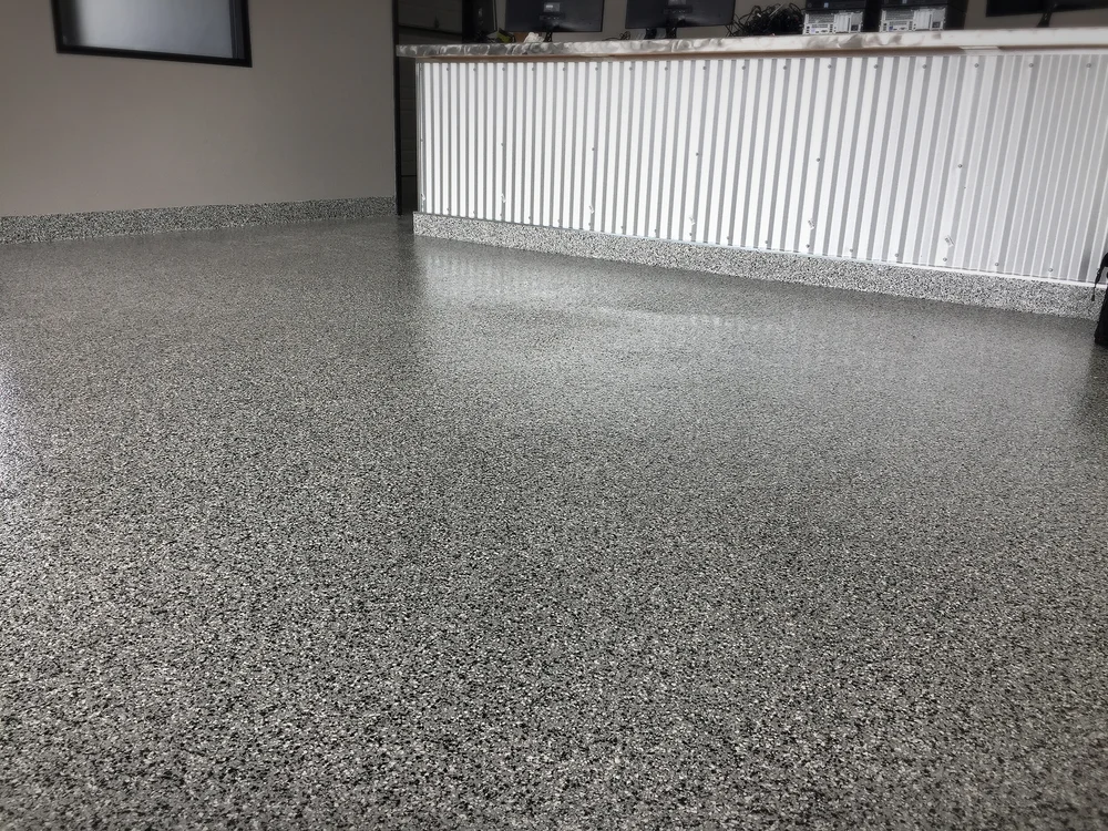 grey epoxy floor with flakes